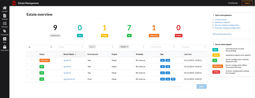 Estate Management lets you set common properties on your servers and assign them customizable environments and tags. You can then search and filter all of the servers you’ve added by multiple criteria to quickly look up what’s in your estate and how to work with it.