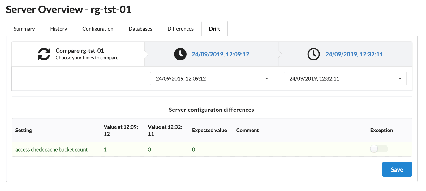 When you rescan your servers, you can identify where the configuration has drifted, then see what changes were made and when. If they’re intentional, you can again approve them with a comment to explain why: