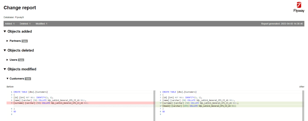 To use Change Report, you need to download Flyway 9 beta CLI.