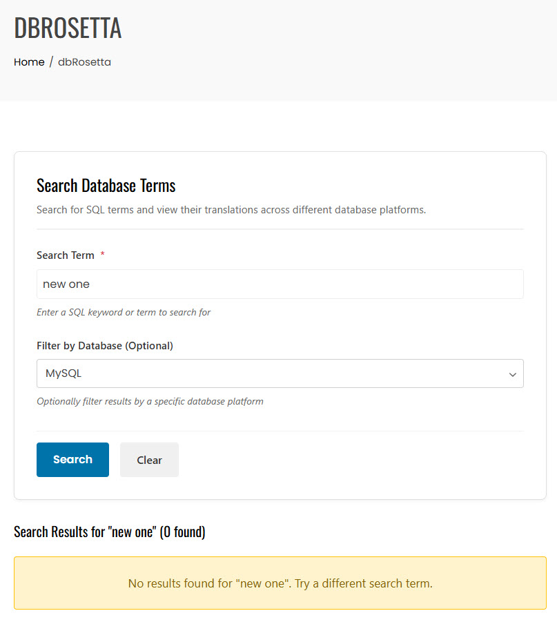 Setting up the web page was silly simple. I created a new page. I put [dbrosetta-search] on it.