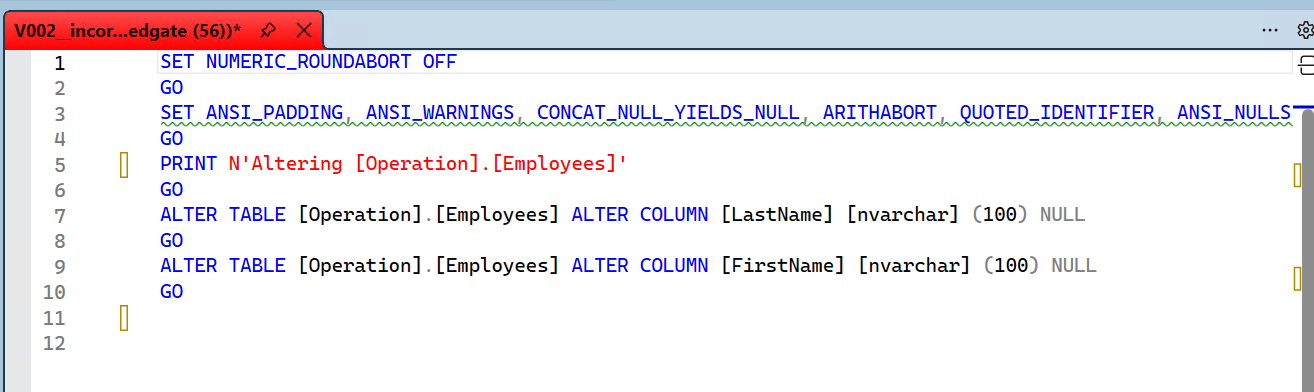 Opening the incoporateDrift.sql file contains the SQL to apply this to your other environments to realign them.