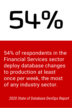 We also found that 54% of respondents in Financial Services deploy production database changes once a week or more often, the highest average rate of deployment across all industry sectors.