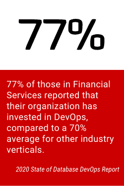 This combination of a highly competitive and highly regulated environments has pushed our Financial Services customers to innovate quickly and adopt the latest database DevOps technologies available.