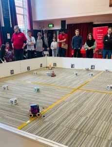 Attending the finals was great fun. 13 teams made it to the finals, each of which had designed and made an autonomous robot that could compete in the final arena game of “Hot Potato”. The aim of the game was to get rid of all the potatoes from the team’s potato patch and retrieve the prized jacket potato from the patch opposite. During each round, the student teams’ robots delivered a mixture of success and varying degrees of entertaining failures (including robots that did nothing, confused robots, robot injuries and robots capturing other robots like a potato)!
