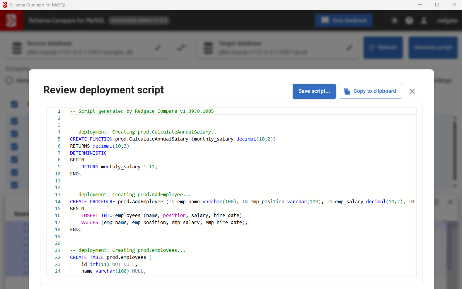Ein leistungsfähiges Tool zum Schema-Vergleich für MySQL: Vergleichen Sie Datenbanken schnell, identifizieren Sie Unterschiede und erstellen Sie verlässliche Bereitstellungsskripte ohne Risiken oder manuelles Schreiben.