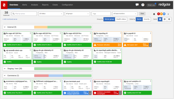 Redgate Monitor is built to scale with your database server estate. No matter how many databases or servers, wherever they are hosted, you can manage the health of your entire estate from a single screen with fast deep dive analysis.