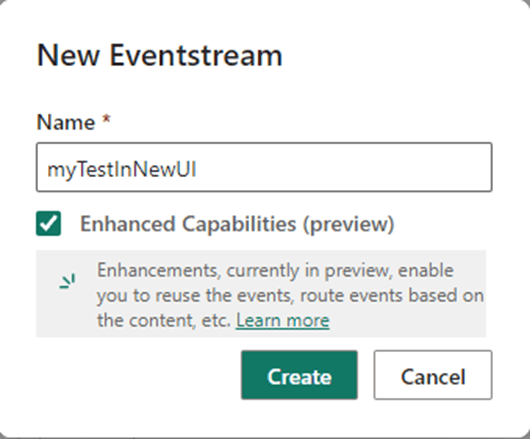 ´This is a new preview UI for the EventStream. We have to methods to reach it: Using the Get Event in the Real-Time Hub or creating a new event stream and selecting to use the preview UI