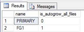 alter database Sales modify filegroup [FG1] AutoGrow_All_Files