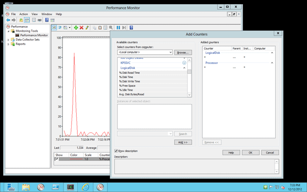 - A “Using Windows Performance Monitor” Guide: http://technet.microsoft.com/en-us/library/cc771692.aspx (For Windows 2008 but holds for Windows 2012 as well)