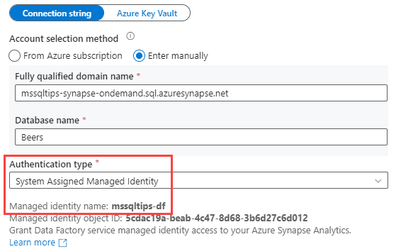 Figure 2: Using a Managed Identity in Azure Data Factory