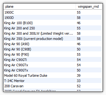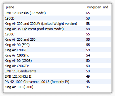 Now the SELECT statement returns only the wingspan_rnd column, as shown in Figure 7.