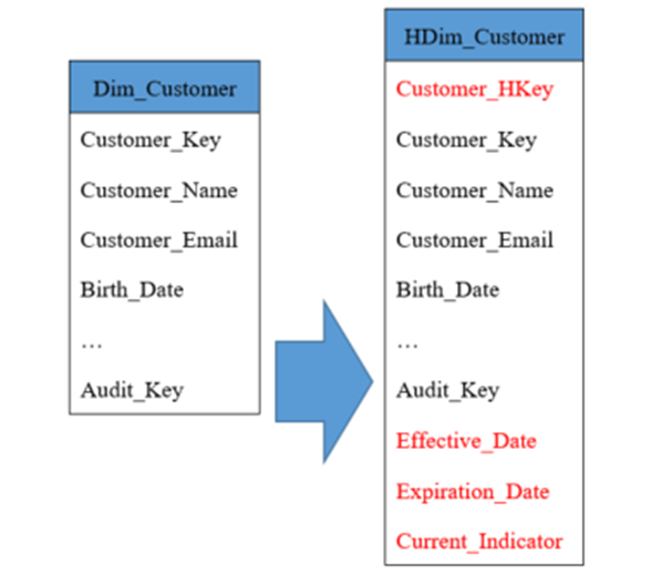Figure 1: Historical Dimensions contain all the columns of the Dimension, including its key.