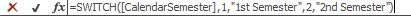 - We will need two new named calculations, ‘Fiscal Semester Name’ and ‘Fiscal Quarter Name’. The DAX instruction will be the same we used for ‘Semester’ and ‘Quarter’, only changing the fields.