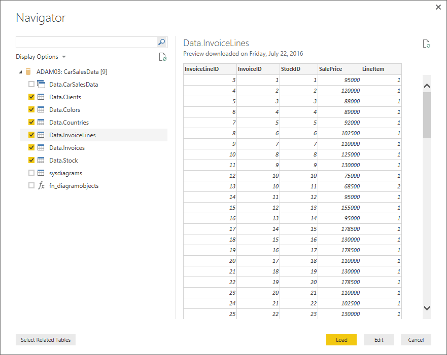 With this in mind, let’s try and connect Power BI Desktop to the tables in this database, pretty much as we did for the first DirectQuery example in this article.