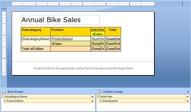 Although the data so far might be useful, with totals for each product for each quarter, it would also be helpful to include totals that give us an overview of the sales, such as how many mountain bikes sold each quarter. Fortunately, Report Builder makes this as easy-if not easier-than creating the matrix itself.