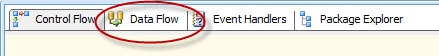 To configure the data flow, double-click the Data Flow task in the control flow. This will move you to the Data Flow tab, shown in Figure 3.