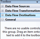 At the left side of the Data Flow tab, you should now find the Toolbox window, which lists the various components you can add to your data flow. The Toolbox organizes the components according to their function, as shown in Figure 5.