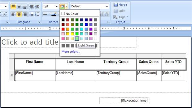 For this exercise, I selected LightGreen; however, you can select any color you want. You can even click the Morecolors link to choose from numerous other shades. Once you’ve selected a color, the table’s selected rows receive that color, as shown in Figure 7.
