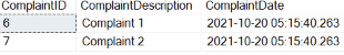For each new complaint, a row will be added to this table. To create the first complaint record, run the code in Listing 3.