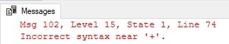This query will not pass a syntax check as SQL Server cannot resolve the local variable cannot be spliced into the string as-is. The resulting error is: