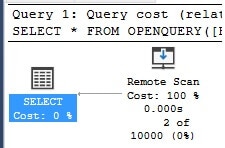 In addition, the execution plan is the same as it was before. This helps confirm that the query is being executed exactly as it is written on the source server and is not being rewritten on-the-fly. In addition, the contents of OPENQUERY cannot be executed locally on the source server, which helps prevent the potential for excessive data transfer from target to source.