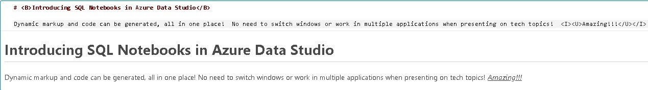 SQL Notebooks, a component of Azure Data Studio, is an excellent tool to add to your presentation arsenal. It allows you to merge markup, text, and code from a wide variety of languages in a single document. In addition to presentation, it can also be a powerful tool for documentation.