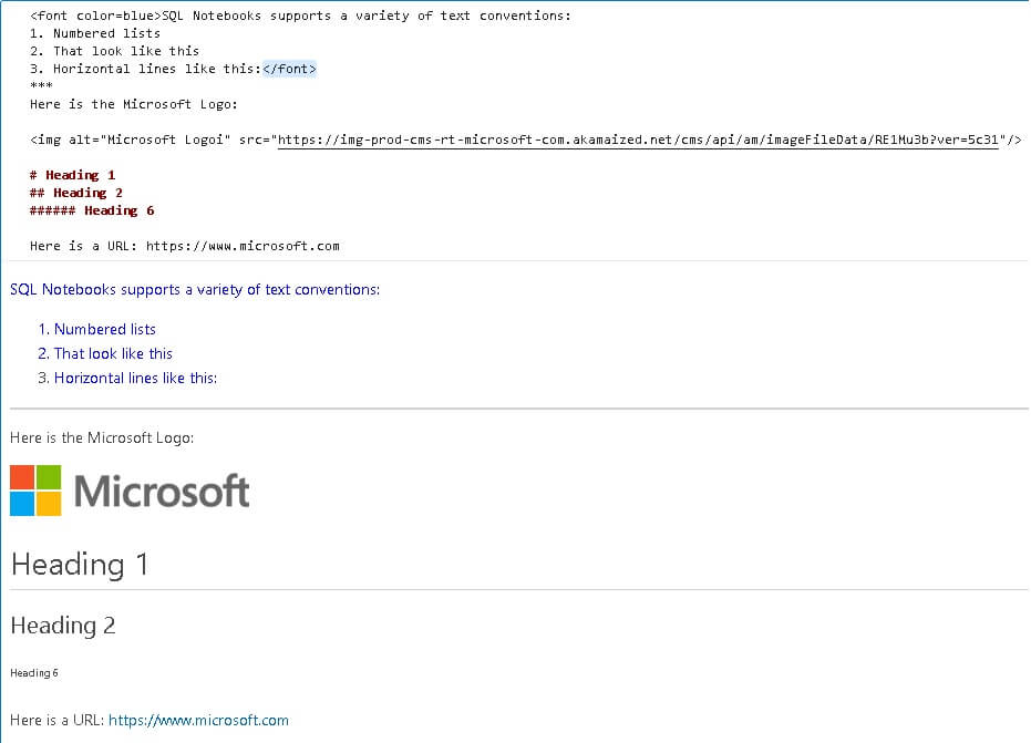 There are a variety of conventions for markup that are useful to note. Each of these will be demonstrated in SQL Notebooks below.