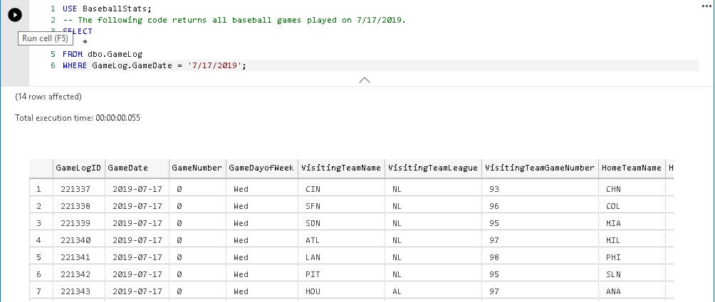 T-SQL written in SQL Notebooks will benefit for the familiar color-coding, as well as IntelliSense, and will therefore look quite similar to what we would compose in a more traditional IDE.
