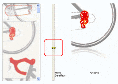 With these elements, we are going to build a data-bound page that will offer a catalog of bicycle parts from the AdventureWorks2000 database. On the left, there will be a scrolling display of images taken from the database. As the user scrolls over each image, it (that is, the image, not the user) will grow slightly and come into focus. If the user clicks on the image, it will be highlighted in the larger area on the right and its details will be displayed in text, as shown in Figure 1.
