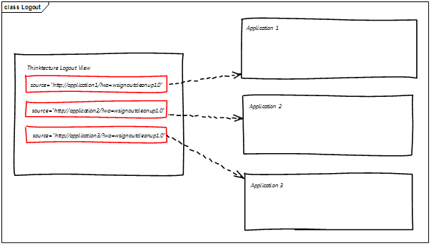 - Contains a number of hidden IFrames – one per each relying party for which an authentication token was generated. The source attribute of each IFrame is equal to relying party realm Url extended with parameter: wa=wsignoutcleanup1.0. This parameter is recognized up by WS-Federation http module of each application – and the module adds to the response instructions to remove its authentication cookie.