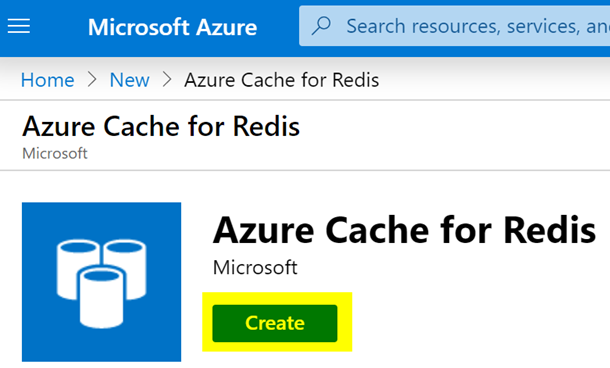 In the next screen, Figure 4, Azure Cache for Redis window, click on the Create button.