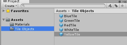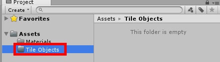Figure 17: Locating the Tile Objects folder in the Assets window.