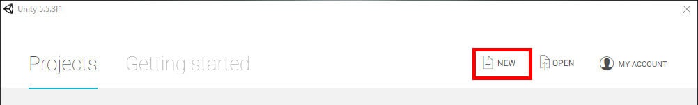 First you need to create a new project to work in. Open Unity and in the top right corner select New like in Figure 1.