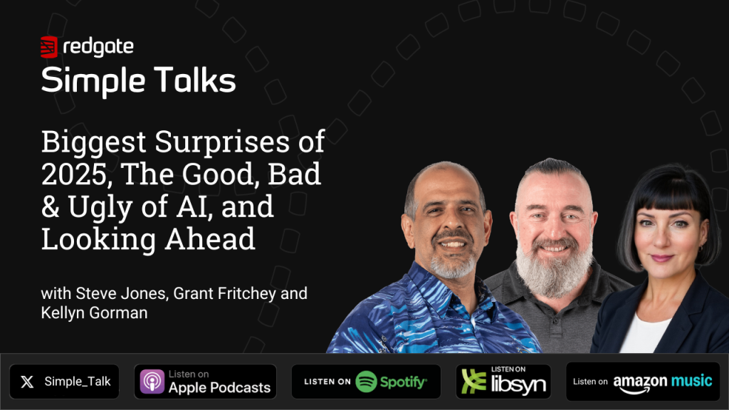 The Simple Talk podcast features hosts Steve Jones, Grant Fritchey and Kellyn Gorman as they discuss technology adoption, career stories, industry challenges and more. From database management and DevOps, to data security and programming techniques, it’s a must-listen for tech industry professionals and enthusiasts.