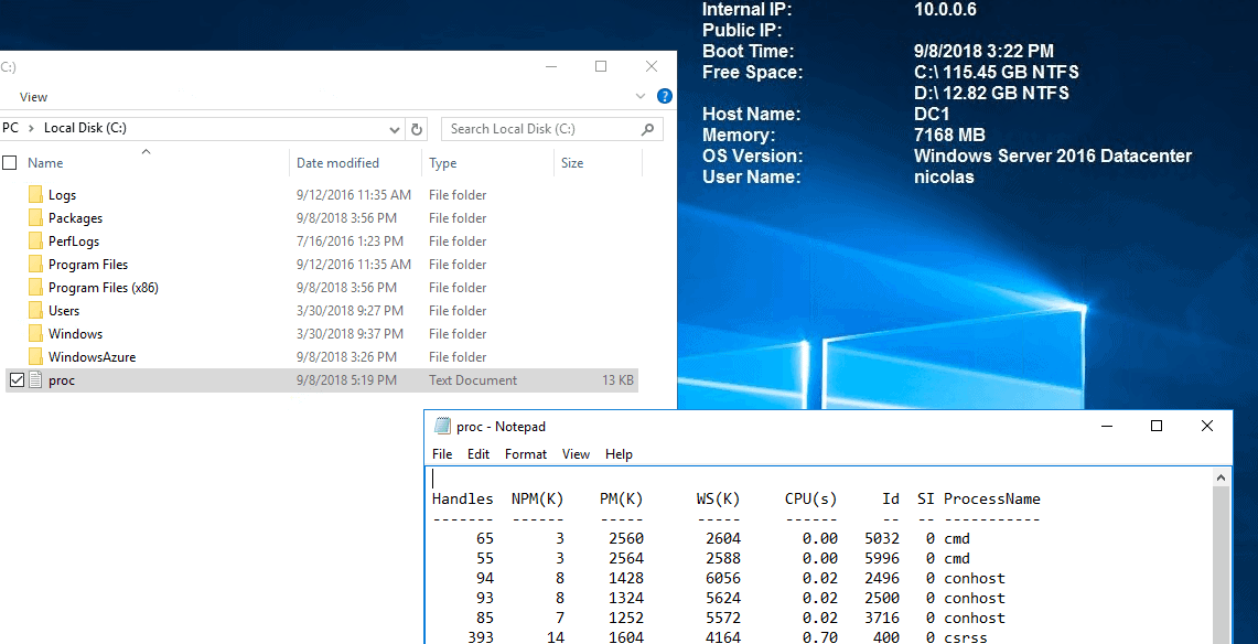 For instance, I can run a custom script stored on my Azure Blob storage. The script is very basic and will write the Get-Process cmdlet results in a text file: