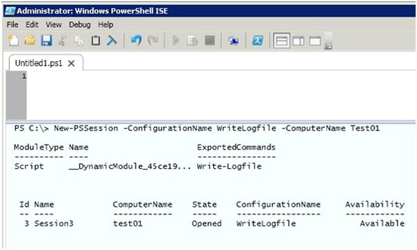 New-PSSession -ConfigurationName WriteLogfile -ComputerName Test01 |
